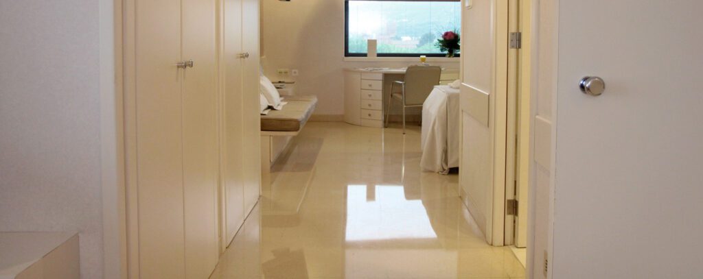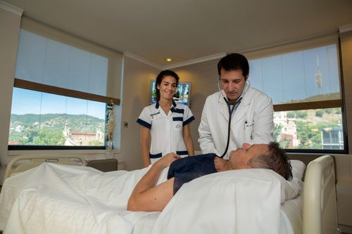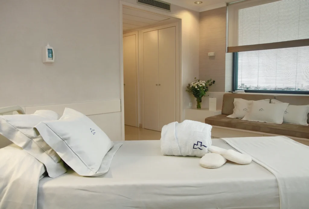 Accommodation is provided in private, high-comfort rooms featuring views of the Barcelona city. Care encompasses daily medical rounds, ensuring vigilant, continuous medical monitoring throughout the hospital stay.